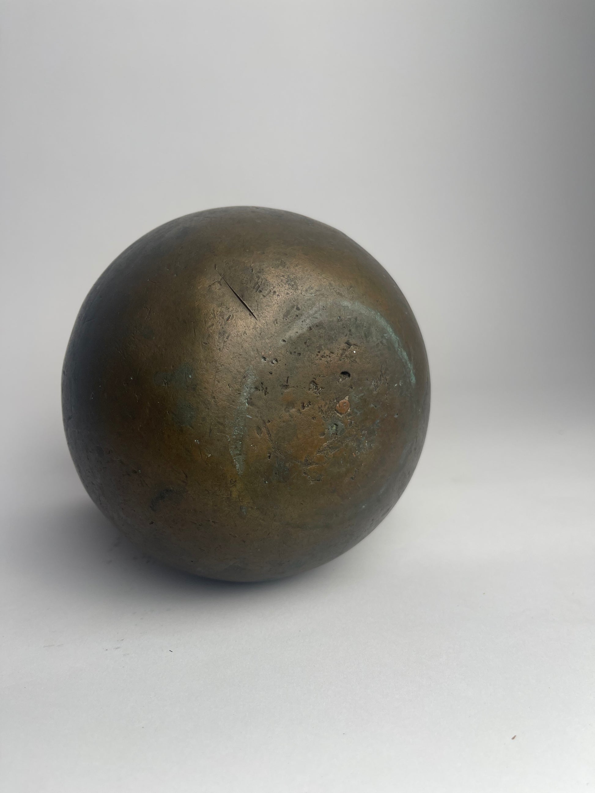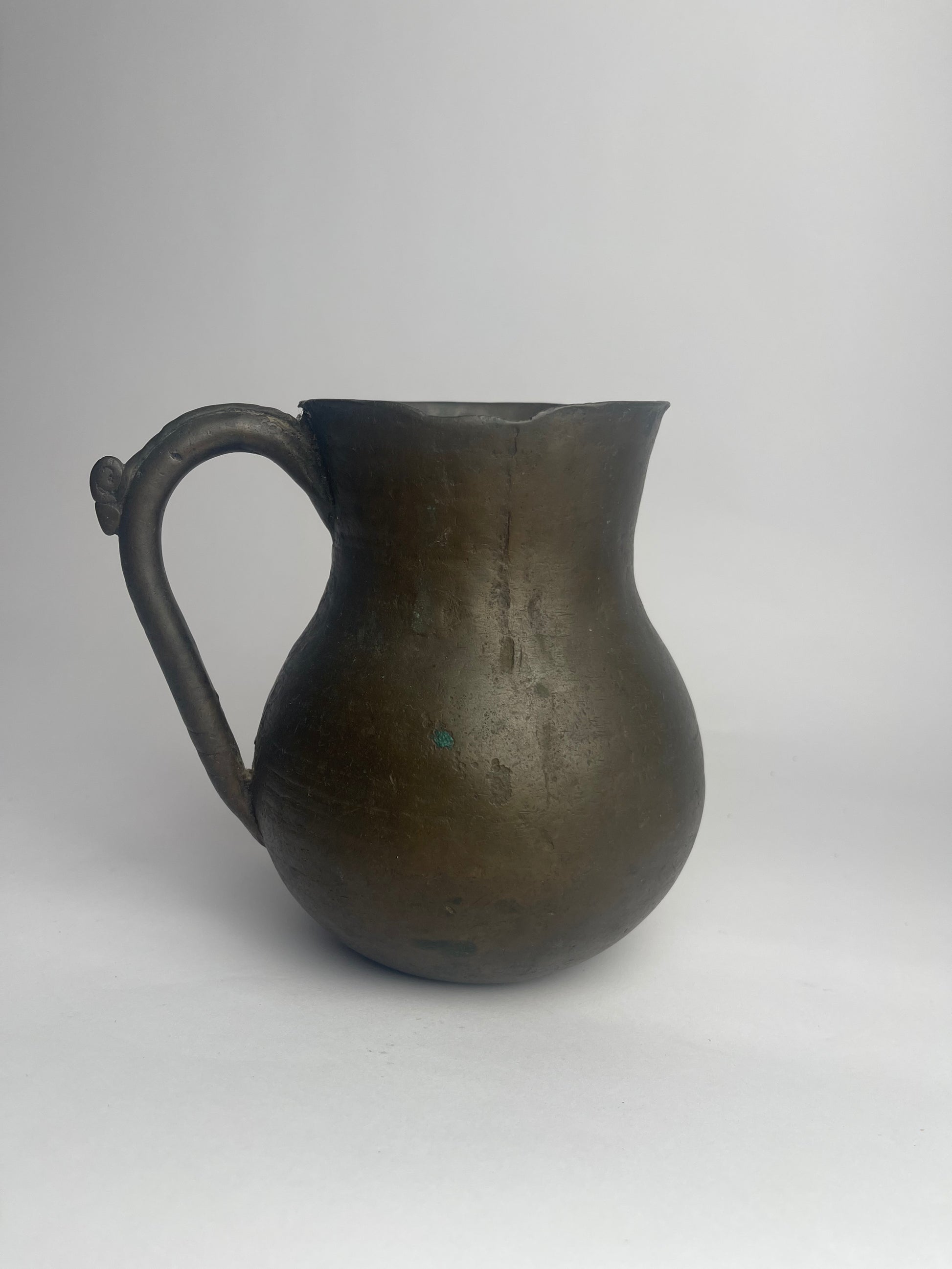 This 15th-century bronze measure is a relic of a world where metalwork was as much about artistry as it was about function. Its elegantly curved form and sturdy construction speak to the skill of the craftsman who shaped it, pouring molten bronze into a mold before refining its surface by hand and applying it's handle. Over time, a nice mellow patina has developed with softly rounded edges from human touch over hundreds of years.
