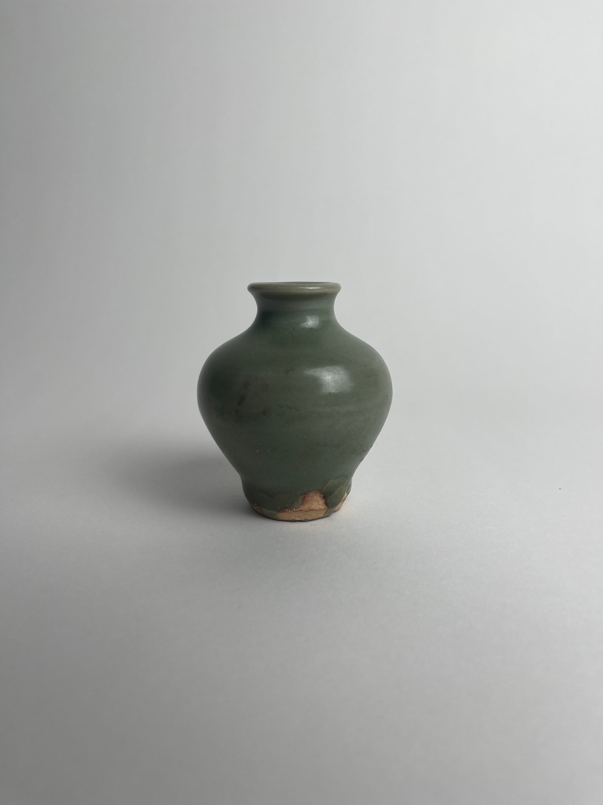 The piece is covered in a smooth, translucent green glaze, characteristic of Longquan celadon. The soft, jade-like tone was highly prized in China and beyond, with Longquan wares exported widely throughout Asia and the Middle East. With its simple yet refined shape and rich glaze, this jarlet embodies the timeless elegance and craftsmanship of Chinese ceramics, making it a cherished artifact for collectors today.