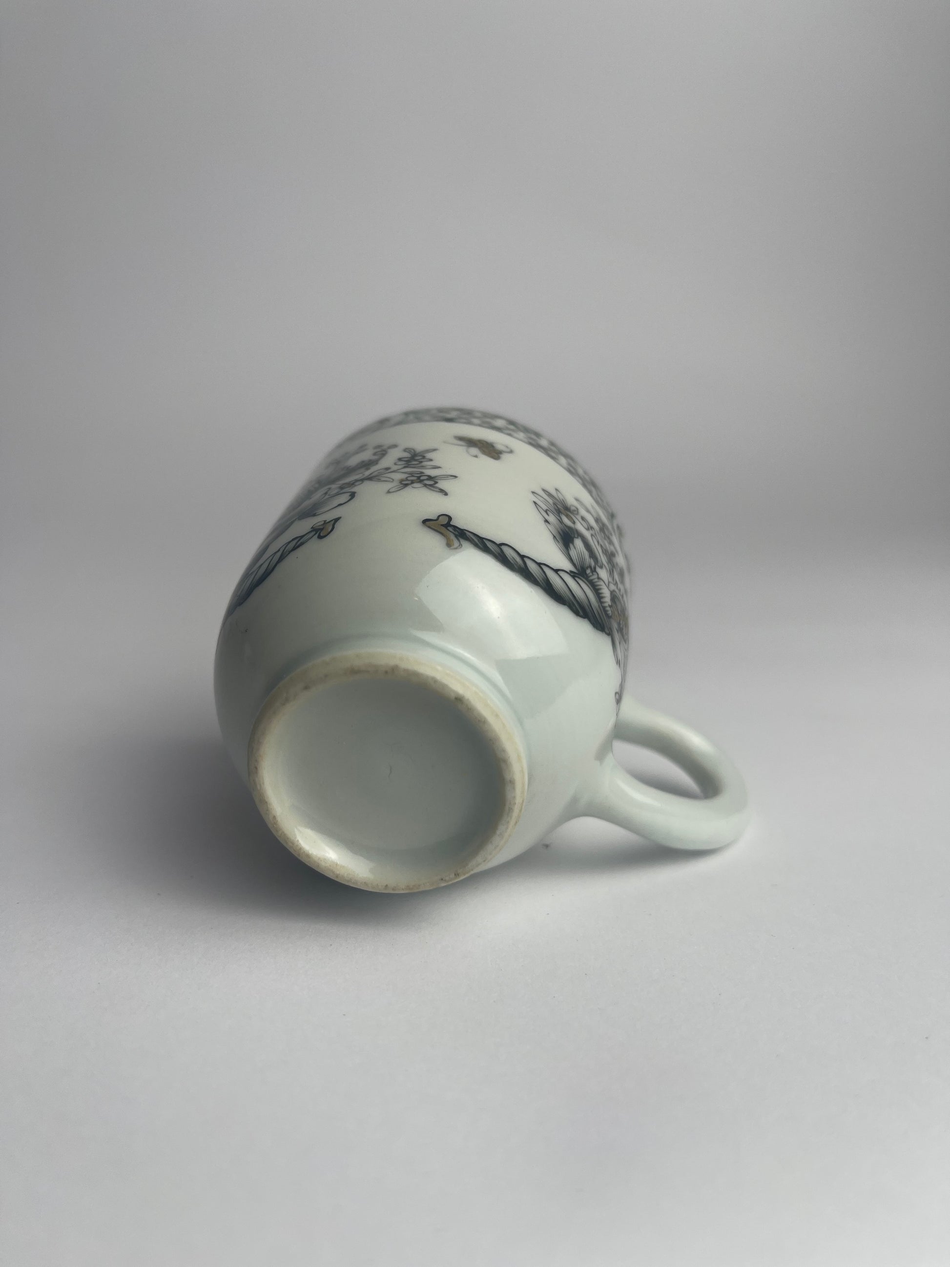 Today, these floral grisaille cups are admired for their refined monochrome palette, restrained decoration, and cross-cultural artistry, standing as elegant survivors of the 18th-century porcelain trade.