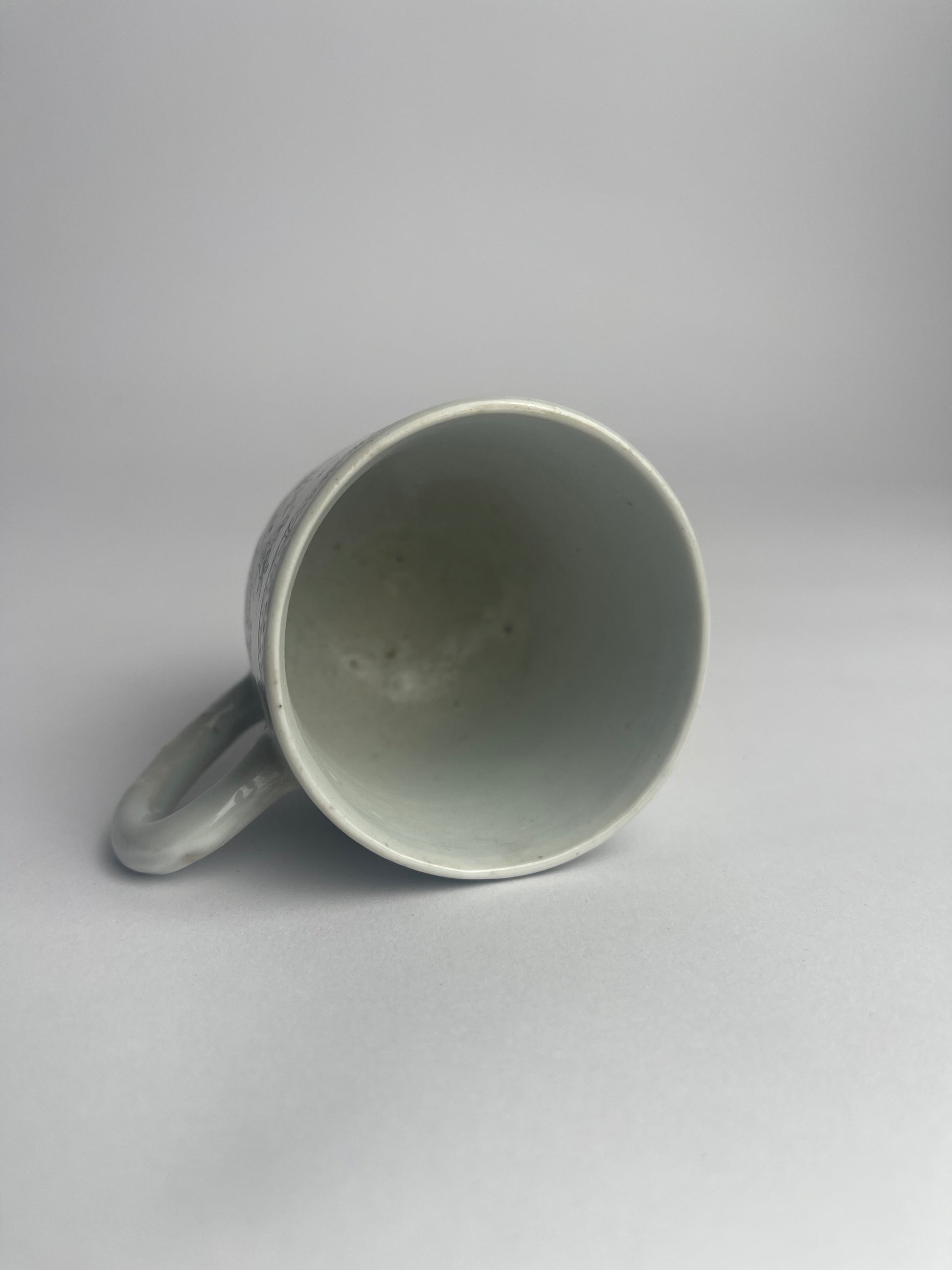 Executed on a thin white porcelain body from Jingdezhen, cups like this were made for the European export market, where grisaille wares appealed to neoclassical tastes and to collectors who appreciated their subtle elegance compared to more colorful famille rose pieces.