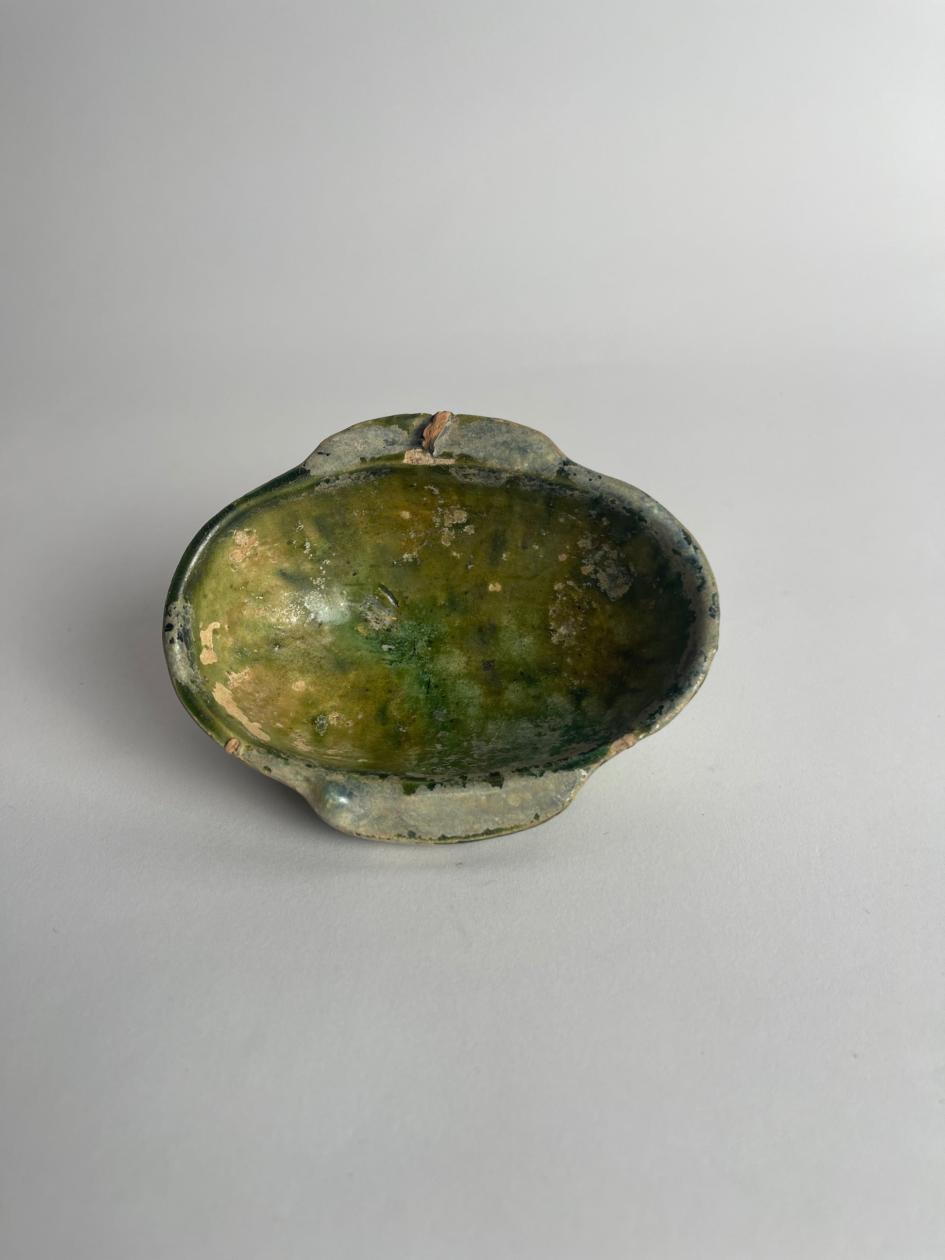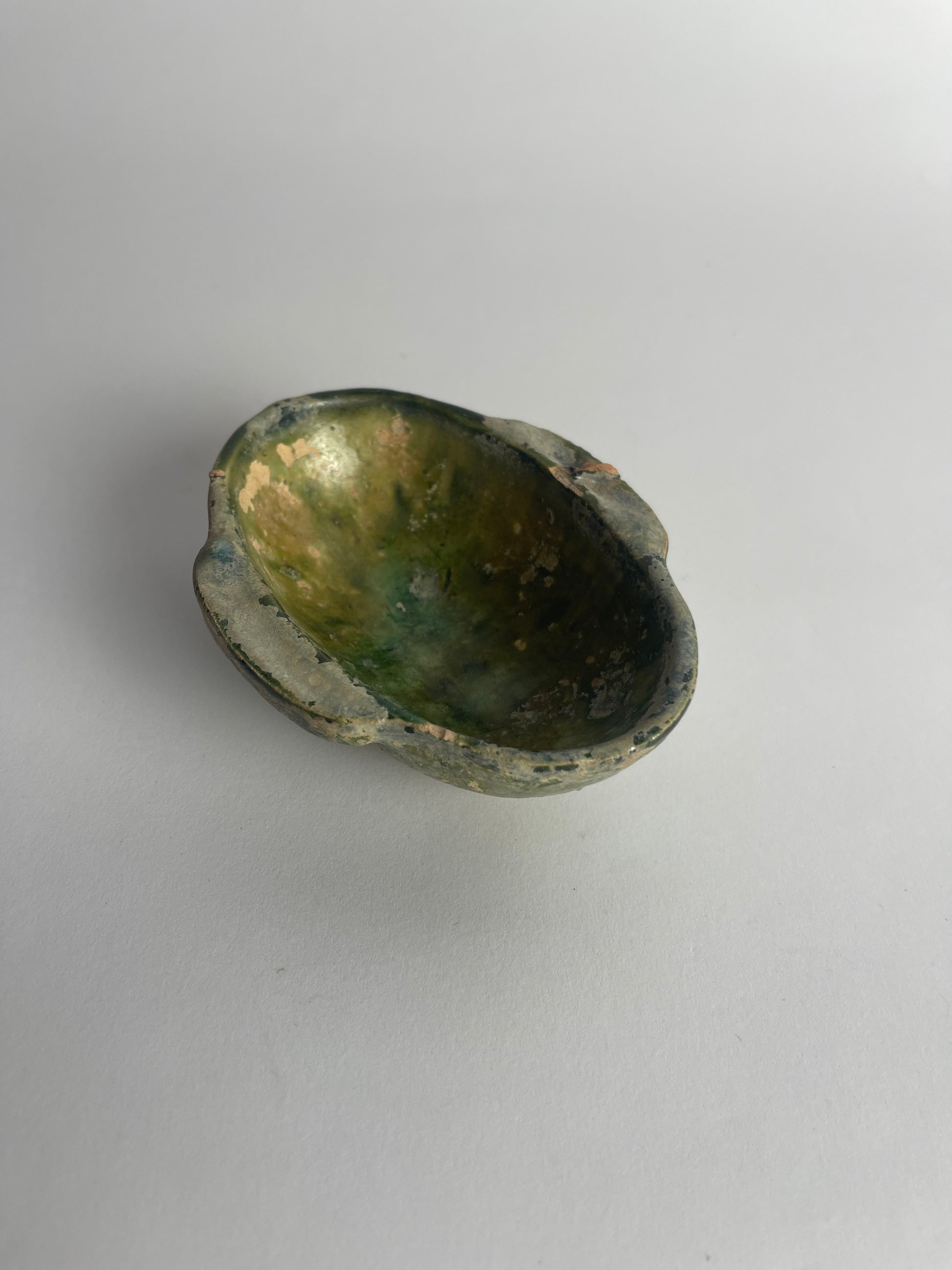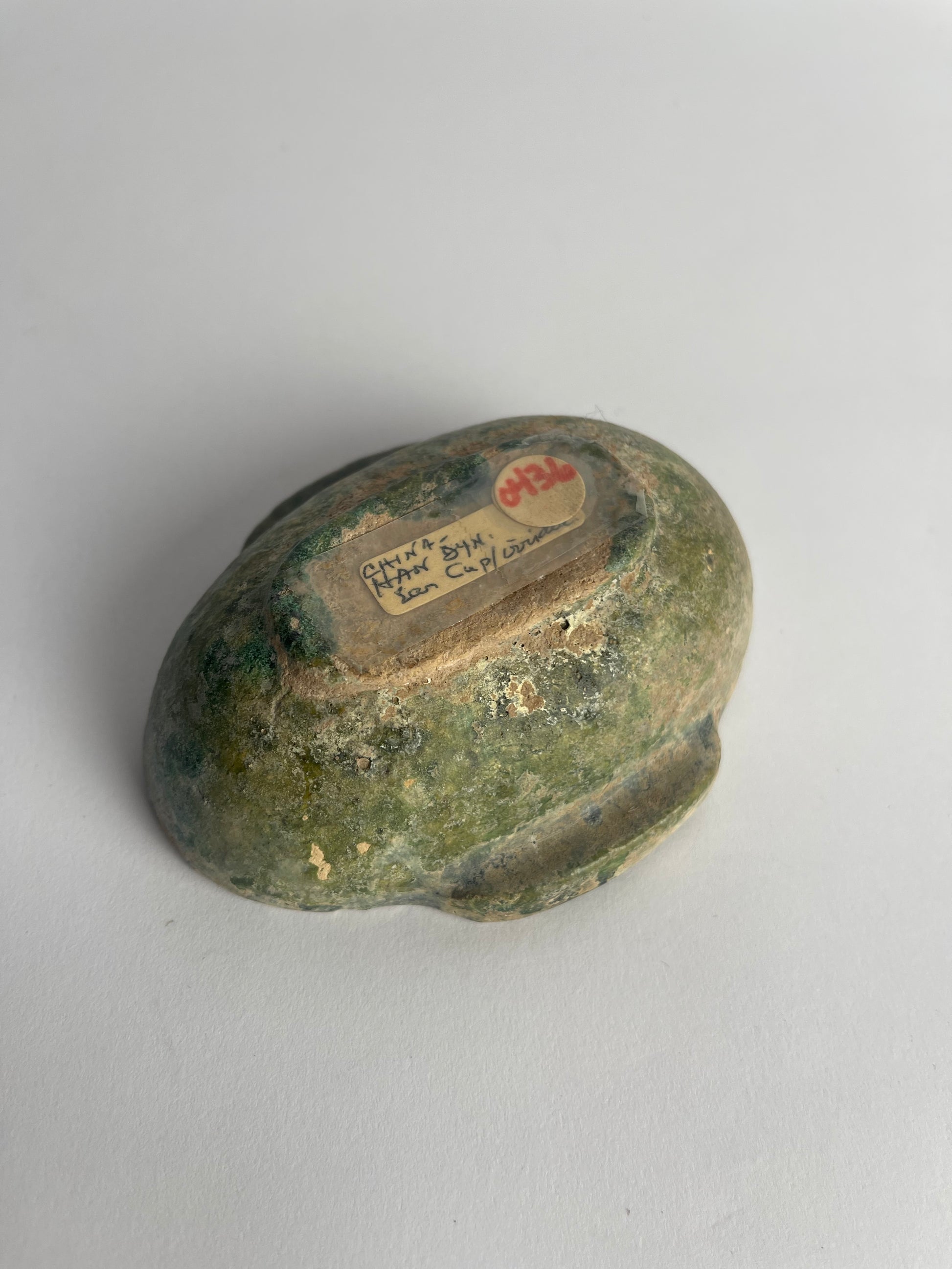 Green-glazed ear cups were commonly placed in Han tombs as mingqi—spirit goods meant to provide comfort and sustenance to the deceased in the afterlife. Their enduring form and subtle sheen capture the Han dynasty’s belief in permanence, luxury, and the continuity of earthly pleasures beyond death.