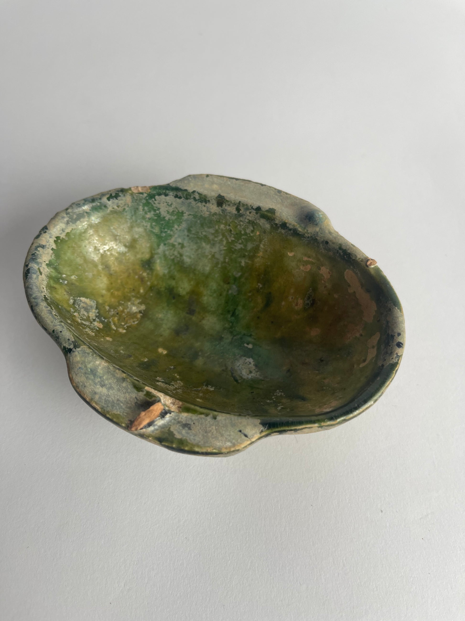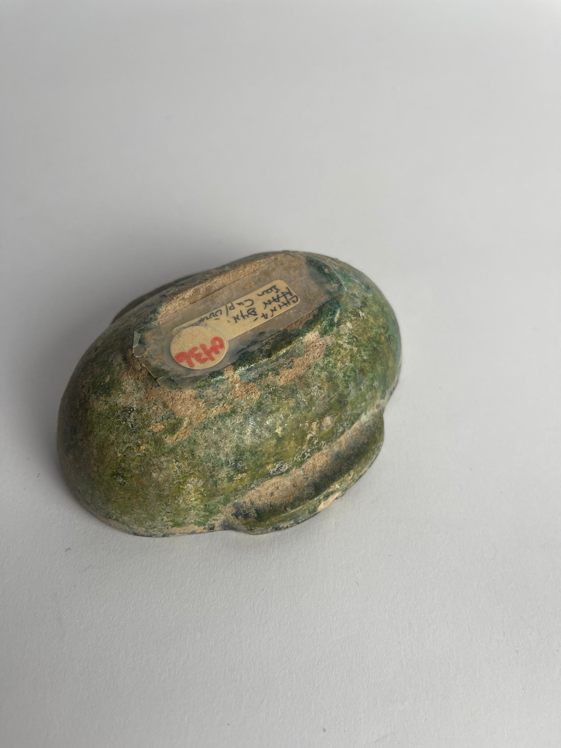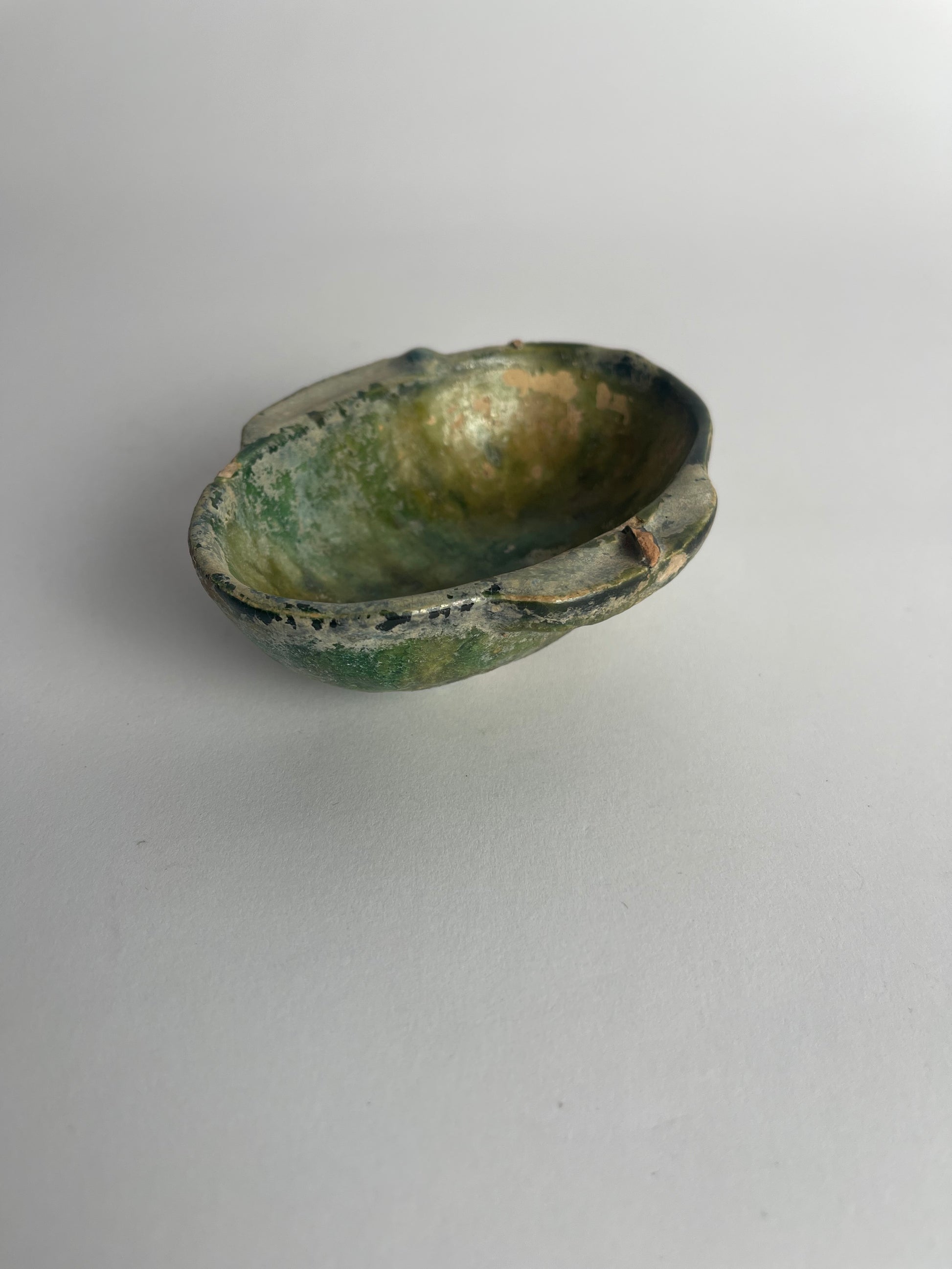 Green-glazed ear cups were commonly placed in Han tombs as mingqi—spirit goods meant to provide comfort and sustenance to the deceased in the afterlife. Their enduring form and subtle sheen capture the Han dynasty’s belief in permanence, luxury, and the continuity of earthly pleasures beyond death.