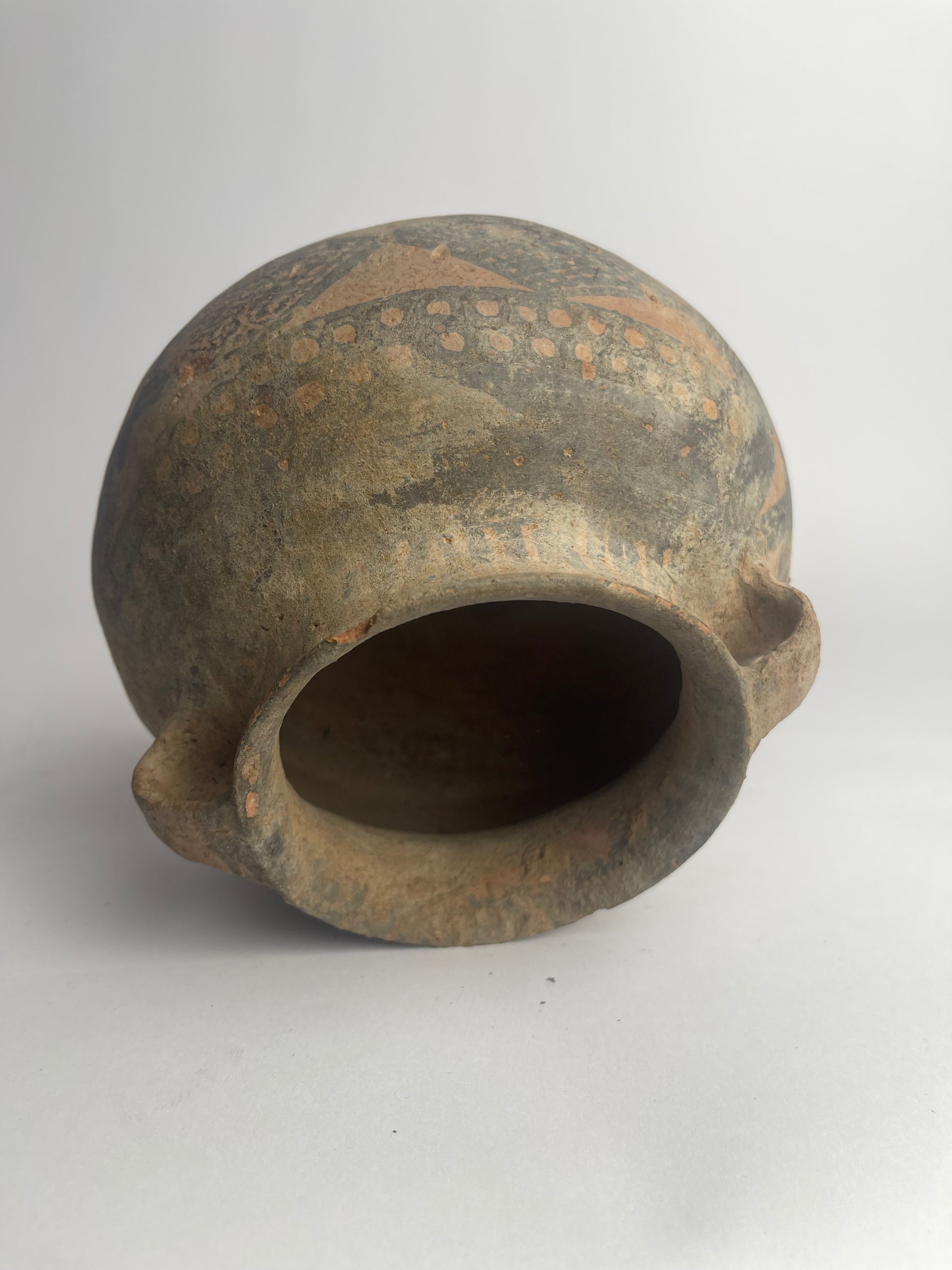 Used for storing water, grain, or ritual offerings, this vessel combines technical finesse with bold visual language, and was likely made with a coiling technique and carefully smoothed by hand.