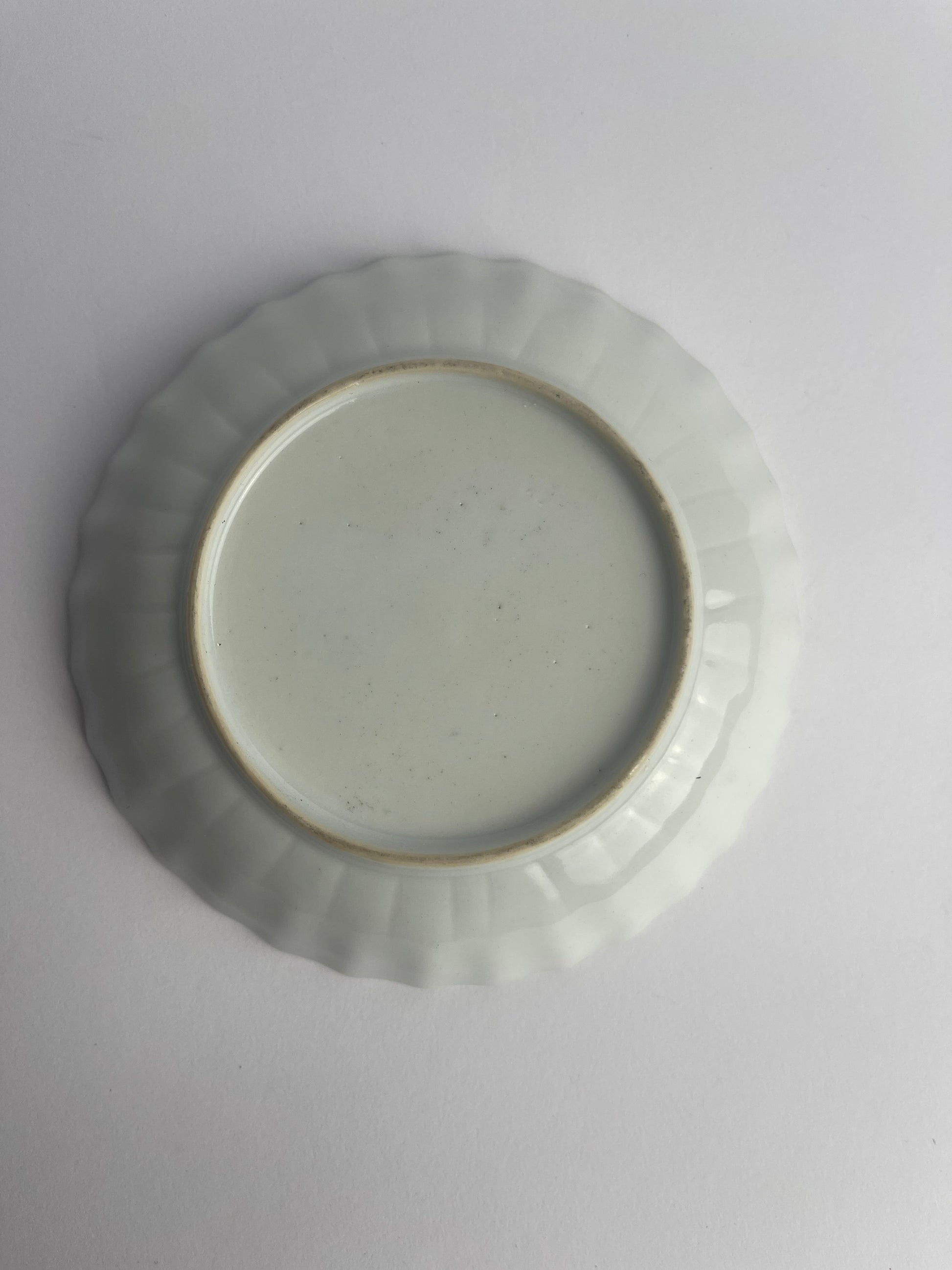 Subtle yet elegant, this saucer dish represents the fusion of Chinese porcelain craftsmanship with European taste for myth, allegory, and fashionable decoration. It survives as a rare and charming example of the highly specialized designs produced in Canton for the Western market.