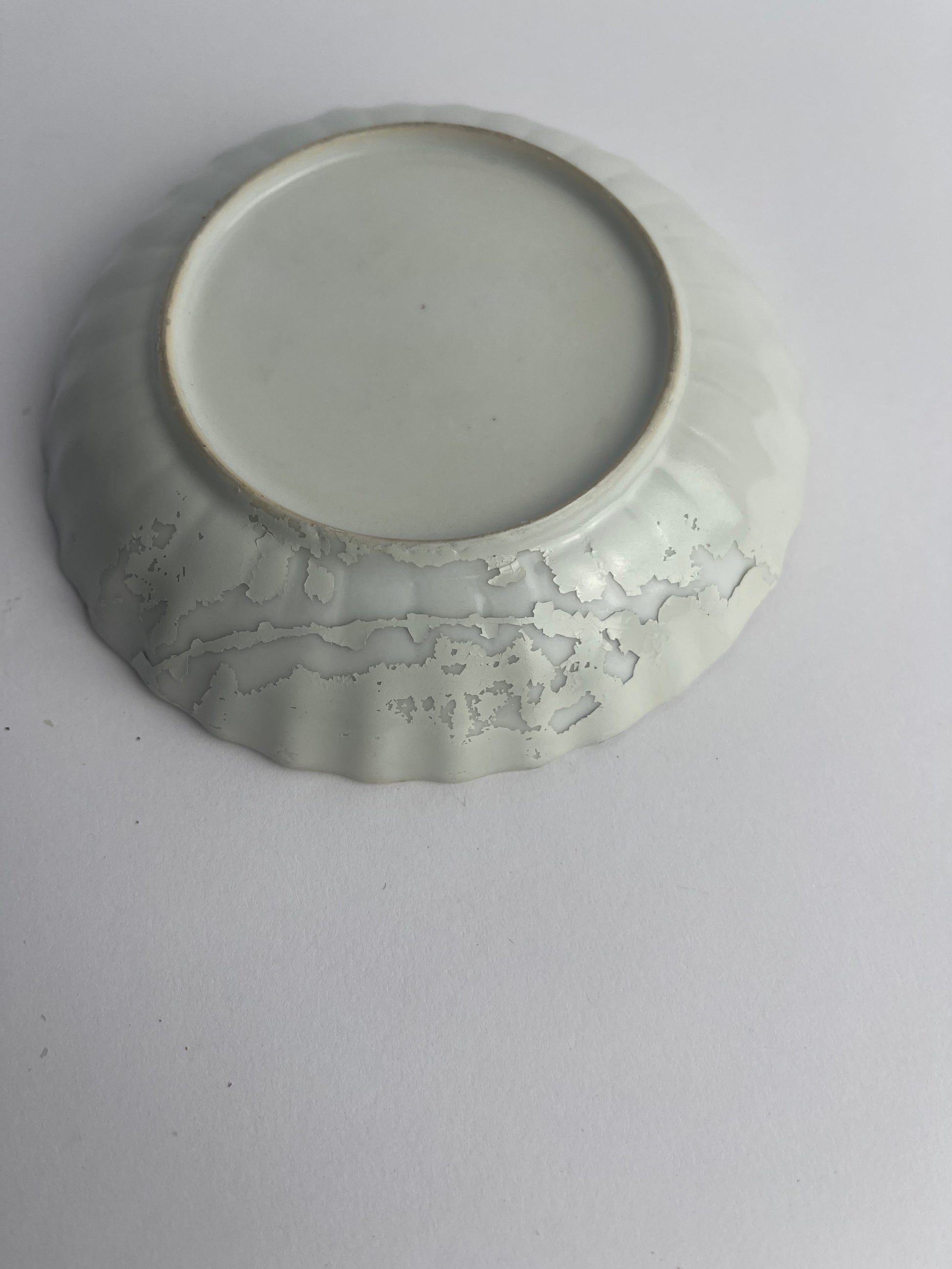 Subtle yet elegant, this saucer dish represents the fusion of Chinese porcelain craftsmanship with European taste for myth, allegory, and fashionable decoration. It survives as a rare and charming example of the highly specialized designs produced in Canton for the Western market.