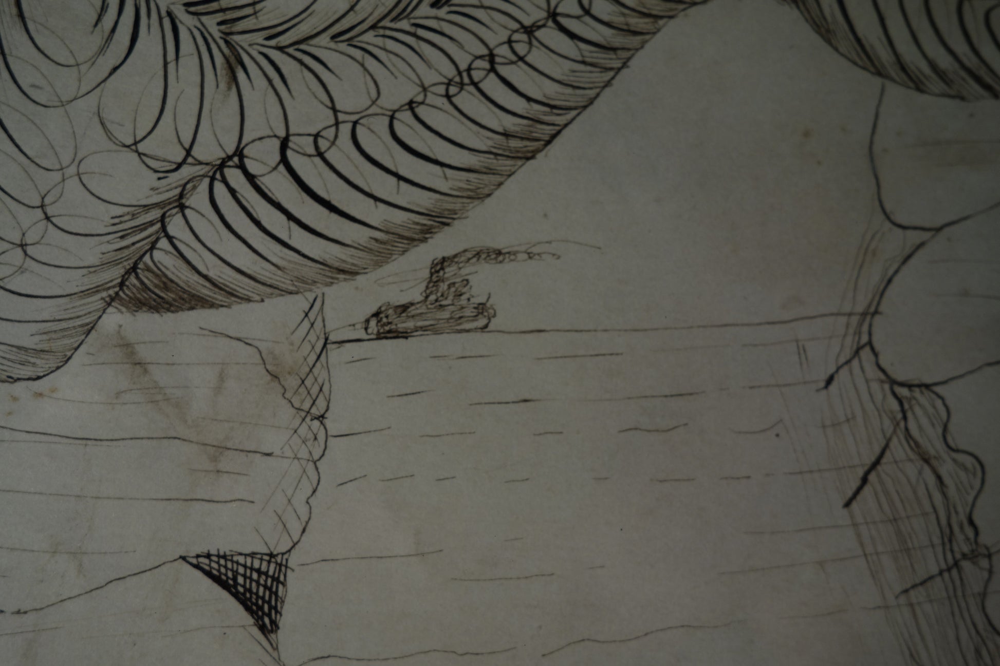 Both drawings are in nice shape and framed behind UV resistant glass. Both have some mild toning in areas.