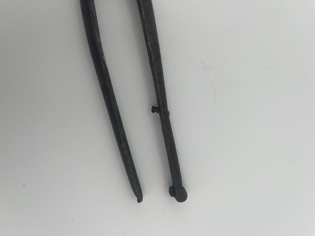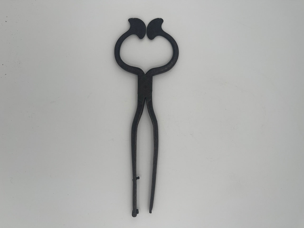 These finely crafted 18th century wrought iron sugar nips exemplify the practical yet elegant tools used for handling and cutting sugar loaves during a time when sugar was sold in solid cones. Featuring a scissor-like design the nips have sharp curved jaws specifically shaped for breaking off small pieces of hardened sugar.